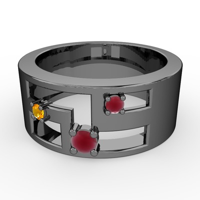 Kök yakut ve sitrin 925 ayar siyah rodyum kaplama gümüş yüzük