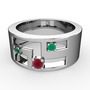 Kök yakut, yeşil kuvars ve kök zümrüt 14 ayar beyaz altın yüzük