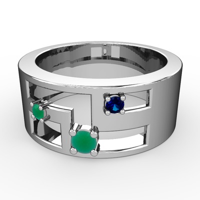 Kök zümrüt ve lab safir 8 ayar beyaz altın yüzük