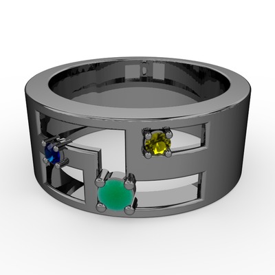 Kök zümrüt, lab safir ve peridot 925 ayar siyah rodyum kaplama gümüş yüzük