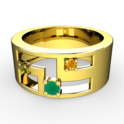 Kök zümrüt, peridot ve sitrin 14 ayar altın yüzük