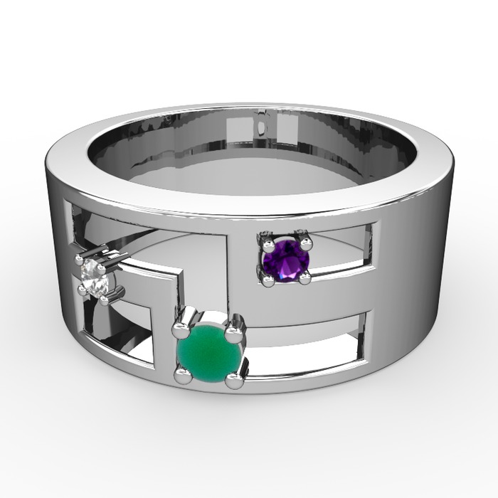 Kök zümrüt, pırlanta ve ametist 18 ayar beyaz altın yüzük (0.036 karat)