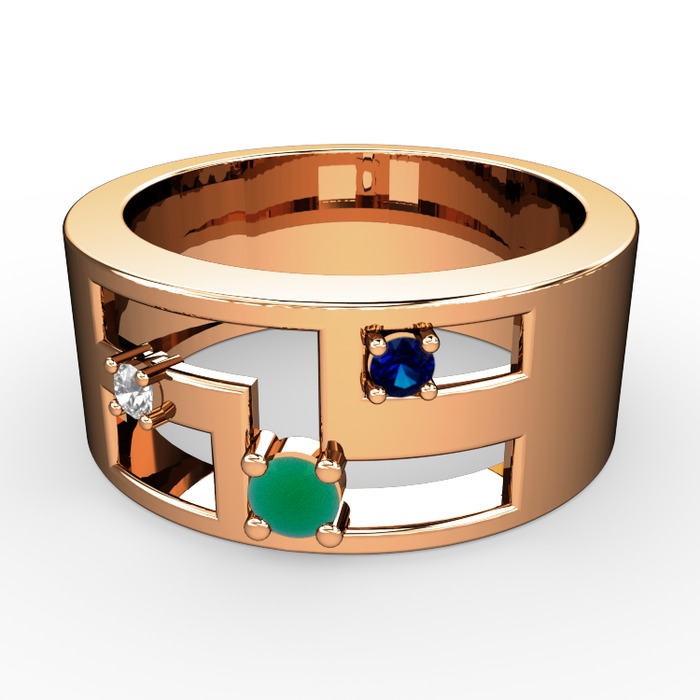 Kök zümrüt, pırlanta ve lab safir 8 ayar rose altın yüzük (0.036 karat)
