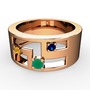 Kök zümrüt, sitrin ve lab safir 14 ayar rose altın yüzük