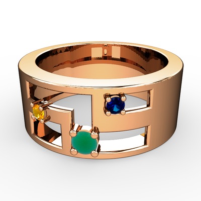 Kök zümrüt, sitrin ve lab safir 8 ayar rose altın yüzük