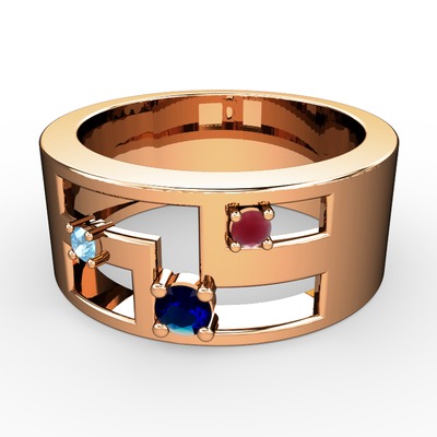 Lab safir, akuamarin ve kök yakut 8 ayar rose altın yüzük