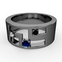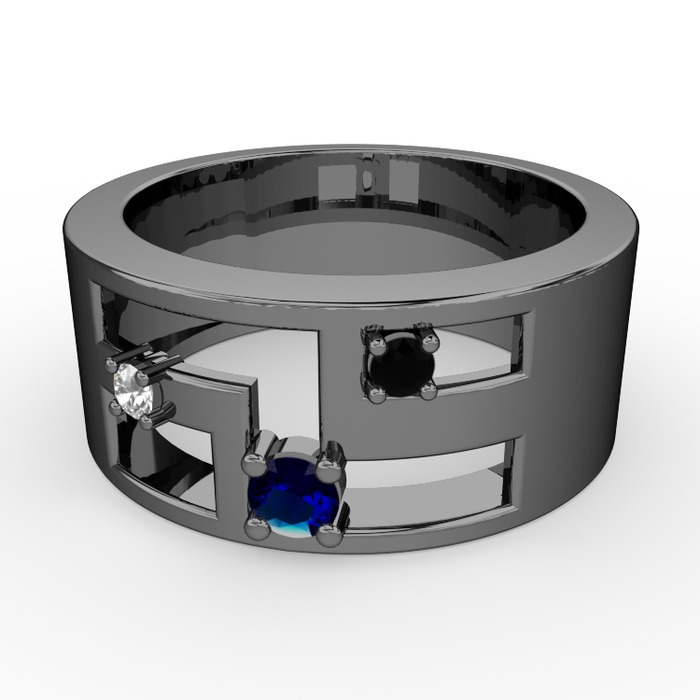 Lab safir, beyaz zirkon ve siyah zirkon 925 ayar siyah rodyum kaplama gümüş yüzük