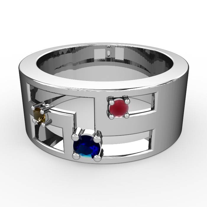 Lab safir, dumanlı kuvars ve kök yakut 925 ayar gümüş yüzük