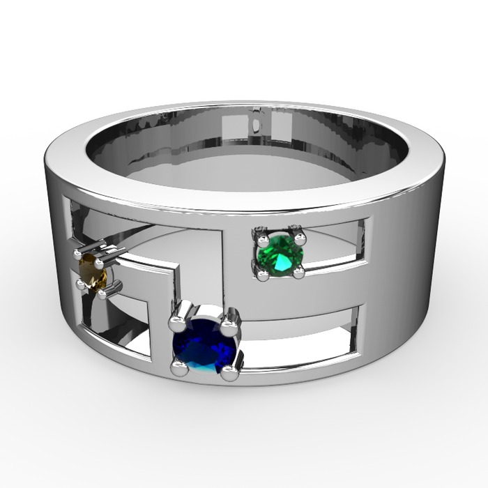 Lab safir, dumanlı kuvars ve yeşil kuvars 14 ayar beyaz altın yüzük