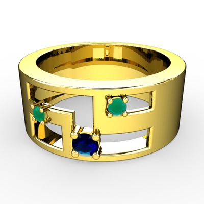 Lab safir ve kök zümrüt 18 ayar altın yüzük
