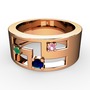 Lab safir, kök zümrüt ve pembe kuvars 14 ayar rose altın yüzük
