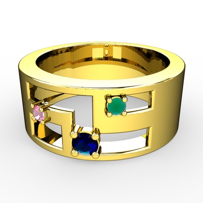 Lab safir, pembe kuvars ve kök zümrüt 18 ayar altın yüzük