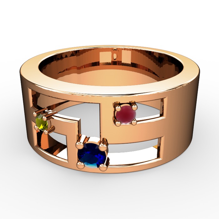 Lab safir, peridot ve kök yakut 18 ayar rose altın yüzük