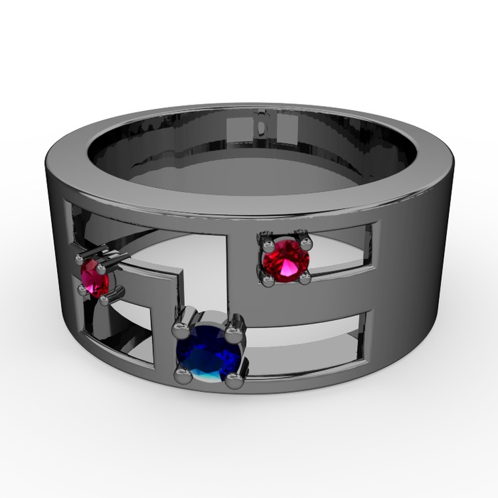 Lab safir ve rodolit garnet 925 ayar siyah rodyum kaplama gümüş yüzük