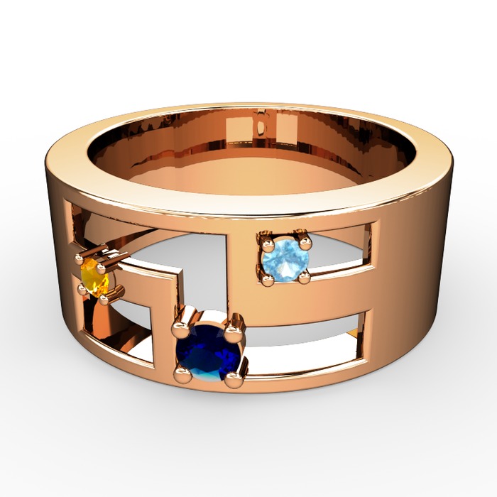 Lab safir, sitrin ve akuamarin 18 ayar rose altın yüzük