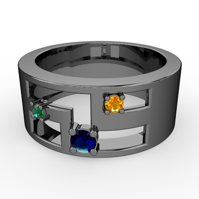 Lab safir, yeşil kuvars ve sitrin 925 ayar siyah rodyum kaplama gümüş yüzük