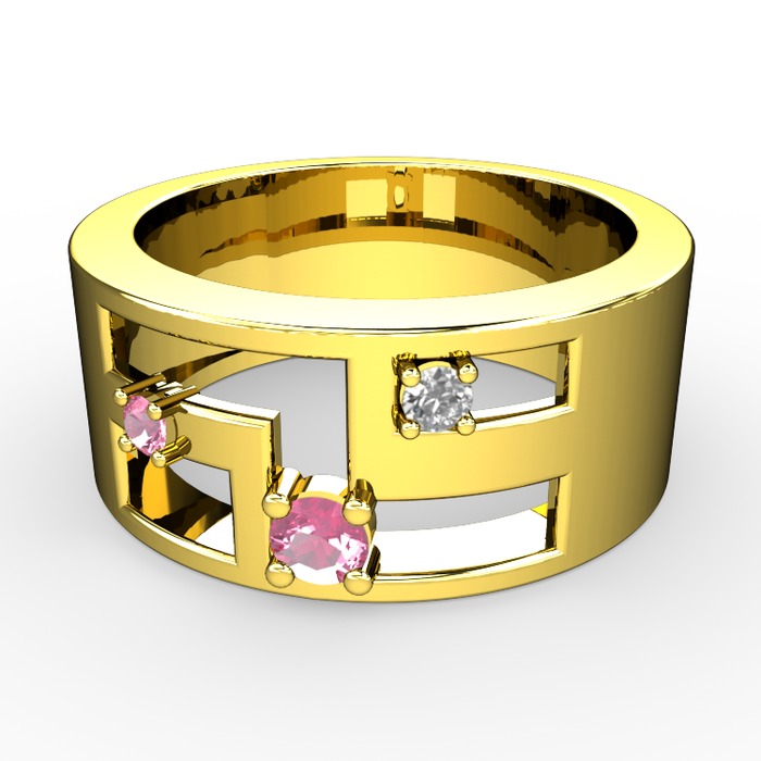 Pembe kuvars ve beyaz zirkon 925 ayar altın kaplama gümüş yüzük