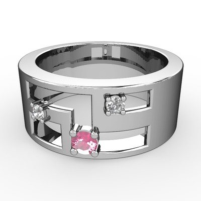Pembe kuvars, beyaz zirkon ve pırlanta 14 ayar beyaz altın yüzük (0.036 karat)