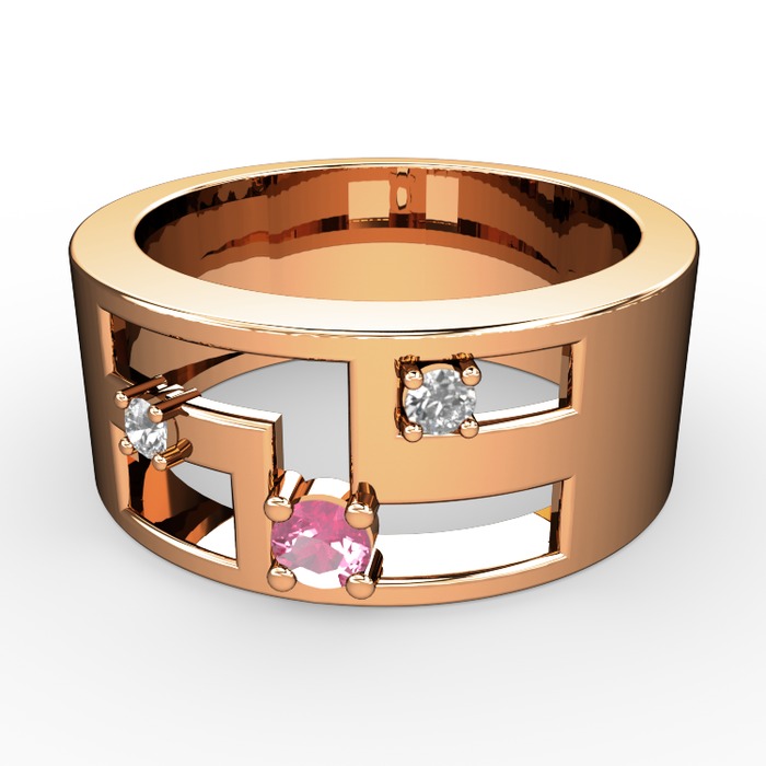 Pembe kuvars, beyaz zirkon ve swarovski 18 ayar rose altın yüzük