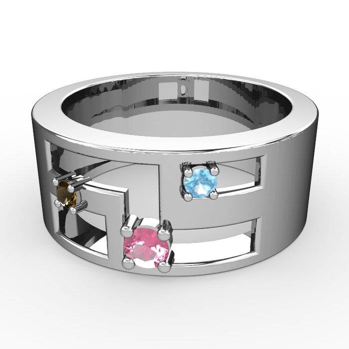 Pembe kuvars, dumanlı kuvars ve akuamarin 18 ayar beyaz altın yüzük