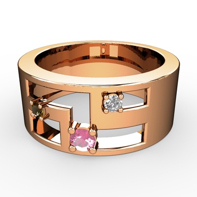 Pembe kuvars, dumanlı kuvars ve beyaz zirkon 18 ayar rose altın yüzük