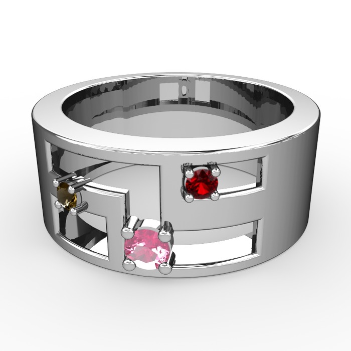 Pembe kuvars, dumanlı kuvars ve garnet 925 ayar gümüş yüzük