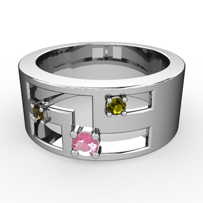 Pembe kuvars, dumanlı kuvars ve peridot 18 ayar beyaz altın yüzük