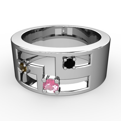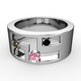 Pembe kuvars, dumanlı kuvars ve siyah zirkon 14 ayar beyaz altın yüzük