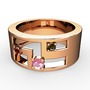 Pembe kuvars, garnet ve dumanlı kuvars 18 ayar rose altın yüzük