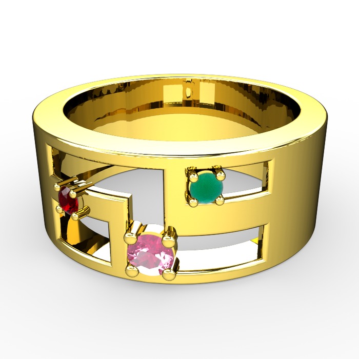 Pembe kuvars, garnet ve kök zümrüt 925 ayar altın kaplama gümüş yüzük