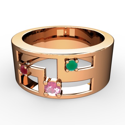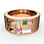 Pembe kuvars, kök yakut ve kök zümrüt 8 ayar rose altın yüzük