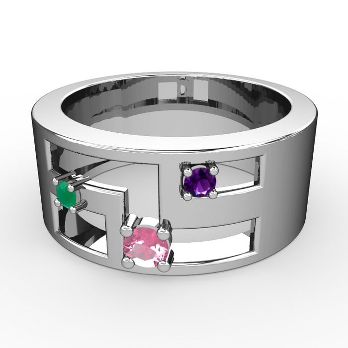 Pembe kuvars, kök zümrüt ve ametist 925 ayar gümüş yüzük
