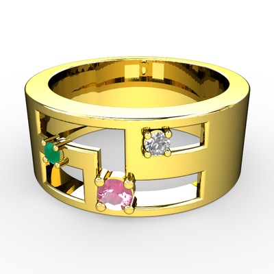 Pembe kuvars, kök zümrüt ve beyaz zirkon 18 ayar altın yüzük