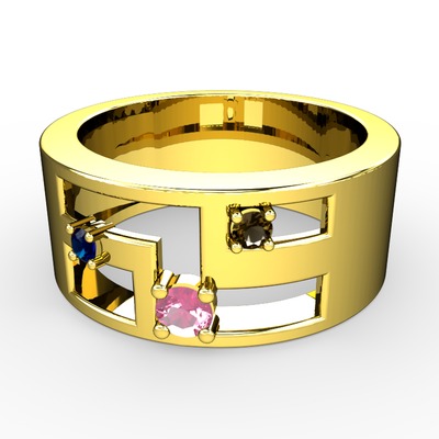 Pembe kuvars, lab safir ve dumanlı kuvars 8 ayar altın yüzük