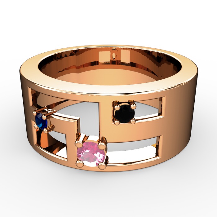 Pembe kuvars, lab safir ve siyah zirkon 8 ayar rose altın yüzük
