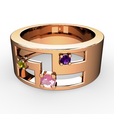 Pembe kuvars, peridot ve ametist 925 ayar rose altın kaplama gümüş yüzük