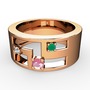 Pembe kuvars, pırlanta ve kök zümrüt 8 ayar rose altın yüzük (0.036 karat)