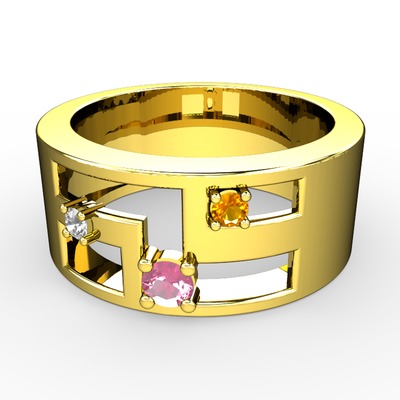 Pembe kuvars, swarovski ve sitrin 14 ayar altın yüzük