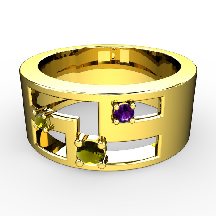 Peridot ve ametist 925 ayar altın kaplama gümüş yüzük