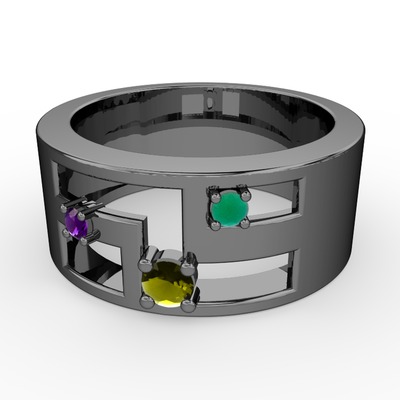 Peridot, ametist ve kök zümrüt 925 ayar siyah rodyum kaplama gümüş yüzük