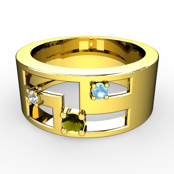 Peridot, beyaz zirkon ve akuamarin 8 ayar altın yüzük