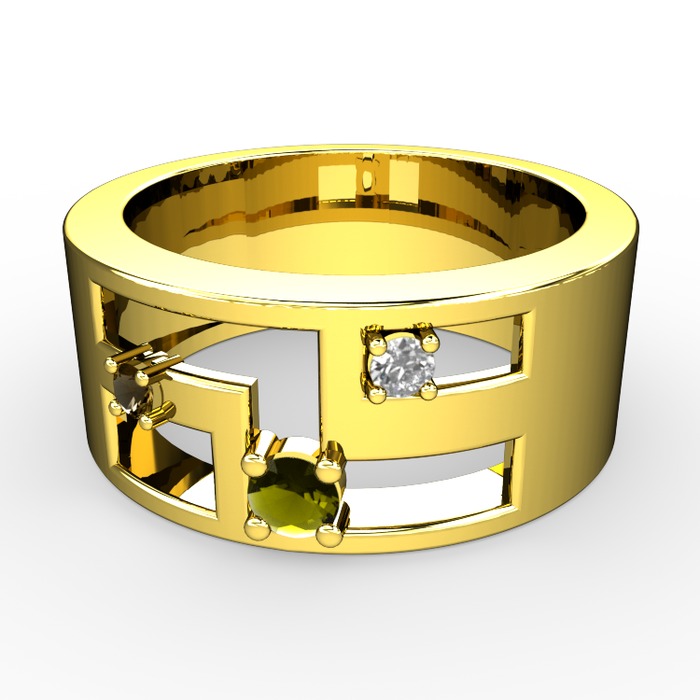 Peridot, dumanlı kuvars ve beyaz zirkon 14 ayar altın yüzük