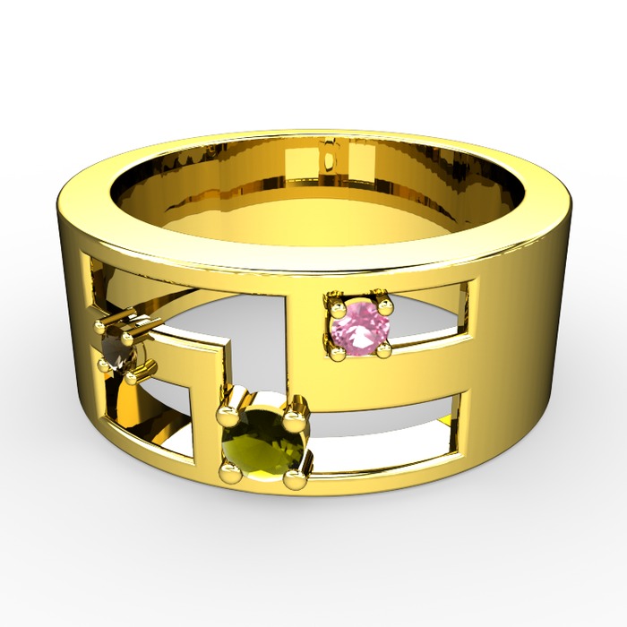 Peridot, dumanlı kuvars ve pembe kuvars 925 ayar altın kaplama gümüş yüzük