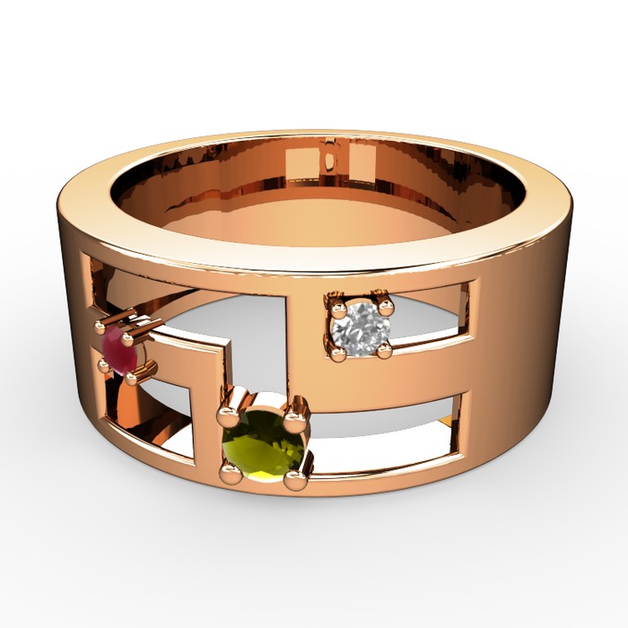 Peridot, kök yakut ve pırlanta 925 ayar rose altın kaplama gümüş yüzük (0.036 karat)