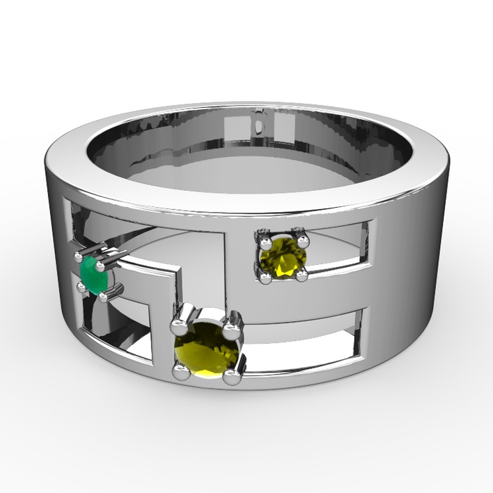 Peridot ve kök zümrüt 14 ayar beyaz altın yüzük