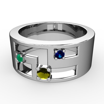 Peridot, kök zümrüt ve lab safir 925 ayar gümüş yüzük