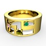 Peridot, pembe kuvars ve kök zümrüt 8 ayar altın yüzük