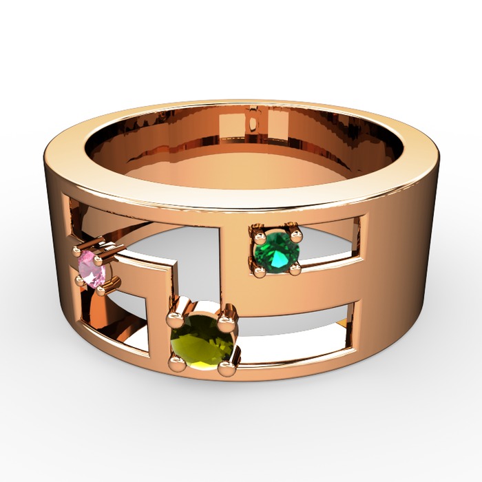 Peridot, pembe kuvars ve yeşil kuvars 18 ayar rose altın yüzük