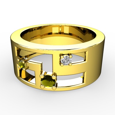 Peridot ve pırlanta 18 ayar altın yüzük (0.036 karat)