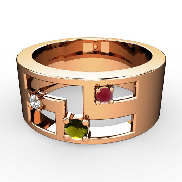 Peridot, pırlanta ve kök yakut 925 ayar rose altın kaplama gümüş yüzük (0.036 karat)